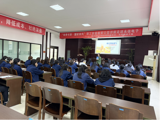 4月10日下午,在慈溪市總工會女職工委員會、長河鎮(zhèn)總工會的傾情支持下,寧波永佳電子科技有限公司工會順利舉辦 “四季書香?塑好家風(fēng)” 職工家庭教育公益講座。